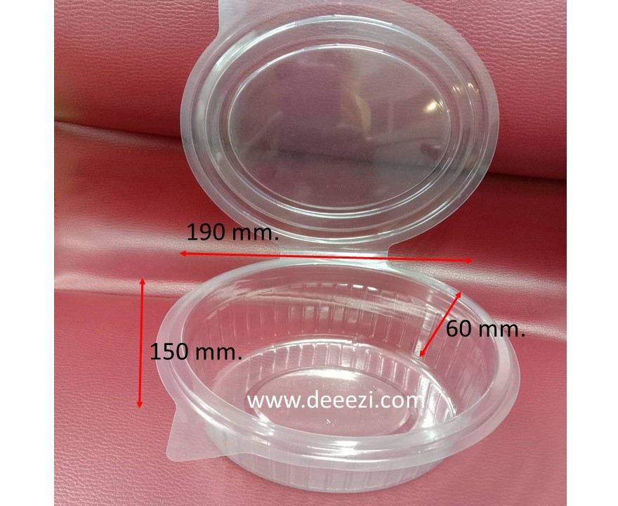 ชามสลัดพลาสติกรูปทรงรี A-PET สีใส พร้อมฝา ขนาด 150 x 190 x60 mm. บรรจุ 50 ชิ้น/แพค