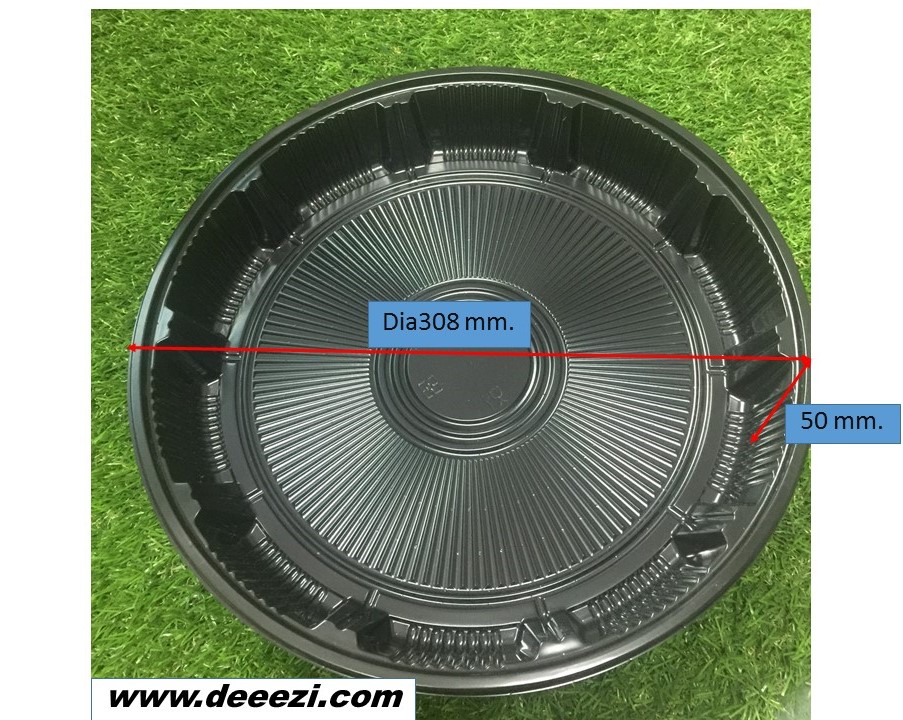 Party Tray วงกลม 1 ช่อง Base: PS-B Lid :OPS Size Dia308x50 mm. บรรจุลังละ 100 ชิ้น