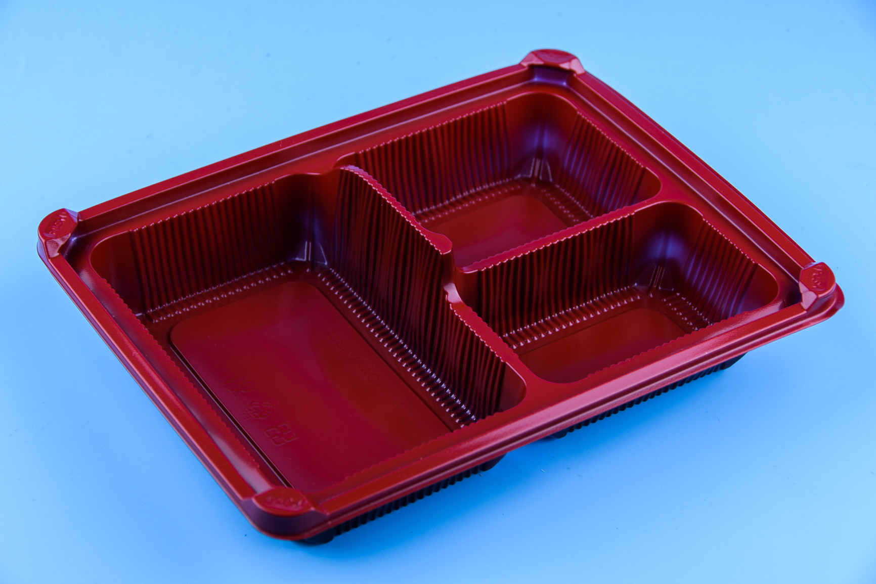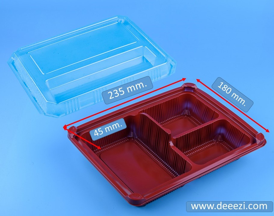 E-Catalog > กล่องอาหารพลาสติก > กล่องอาหาร 3 ช่อง ฝาล็อคสีแดง EX-301R