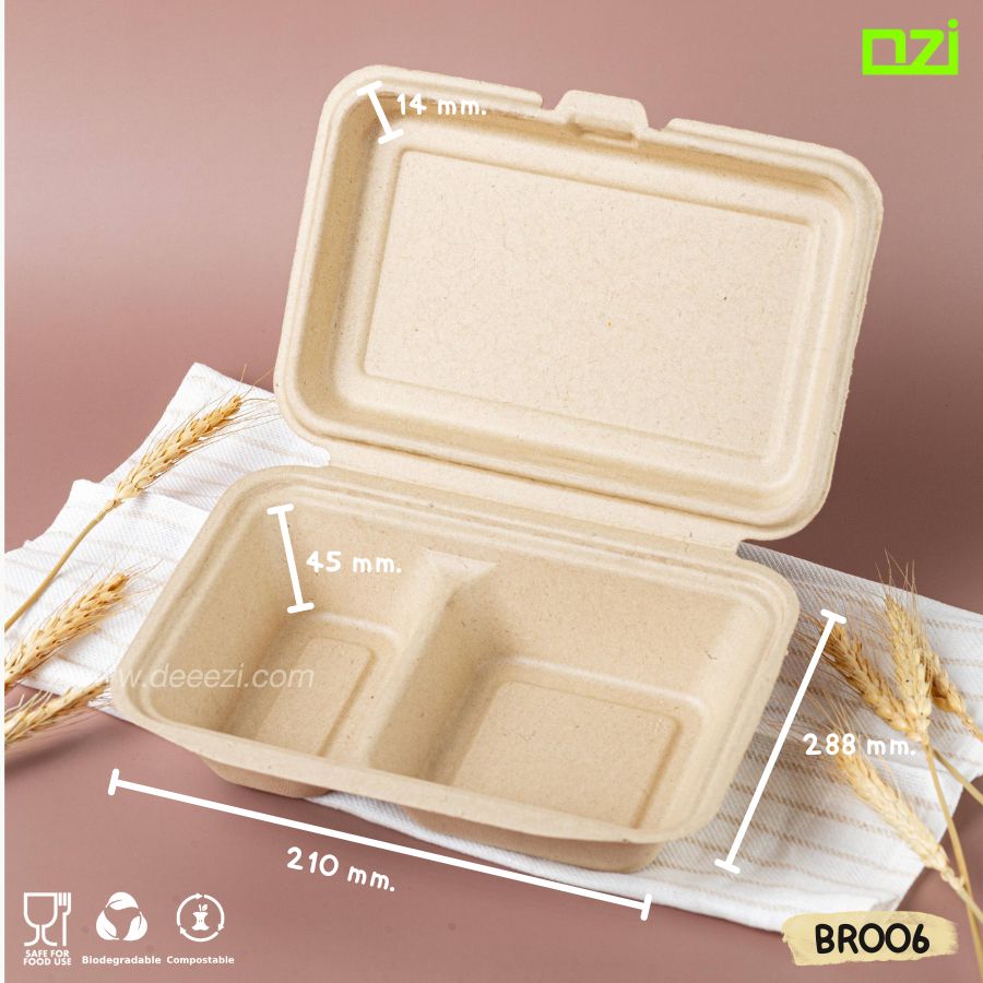 กล่องอาหารเยื่อฟางข้าว 2 ช่อง 700ml. พร้อมฝาในตัว