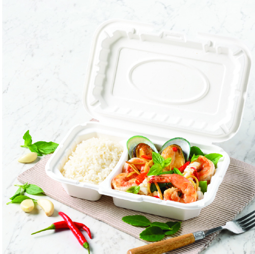 E-Catalog > บรรจุภัณฑ์ย่อยสลายได้ > กล่องเฟสท์ไบโอ 2 ช่อง 950ml.