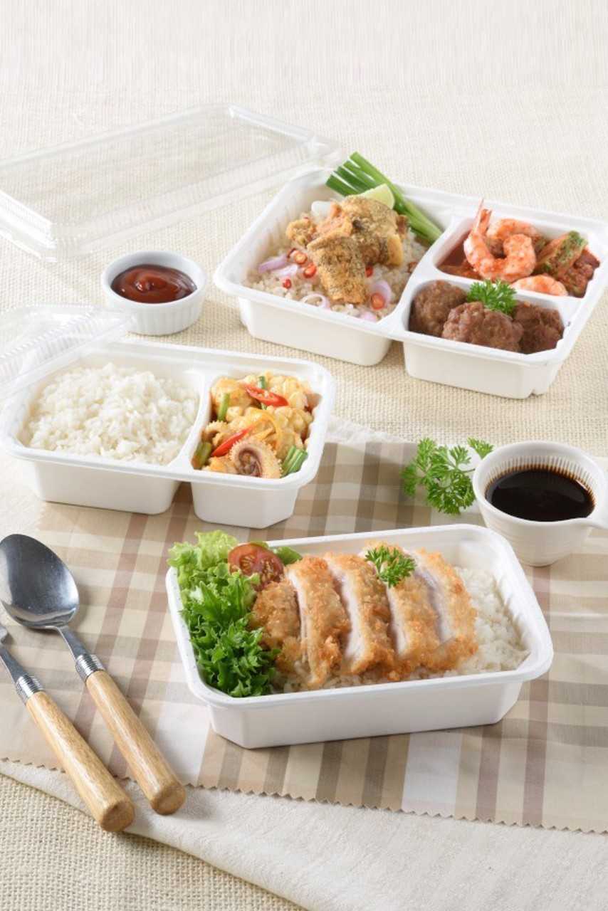 E-Catalog > บรรจุภัณฑ์ย่อยสลายได้ > กล่องเยื่อธรรมชาติเฟสท์ 2 ช่อง 600ml.