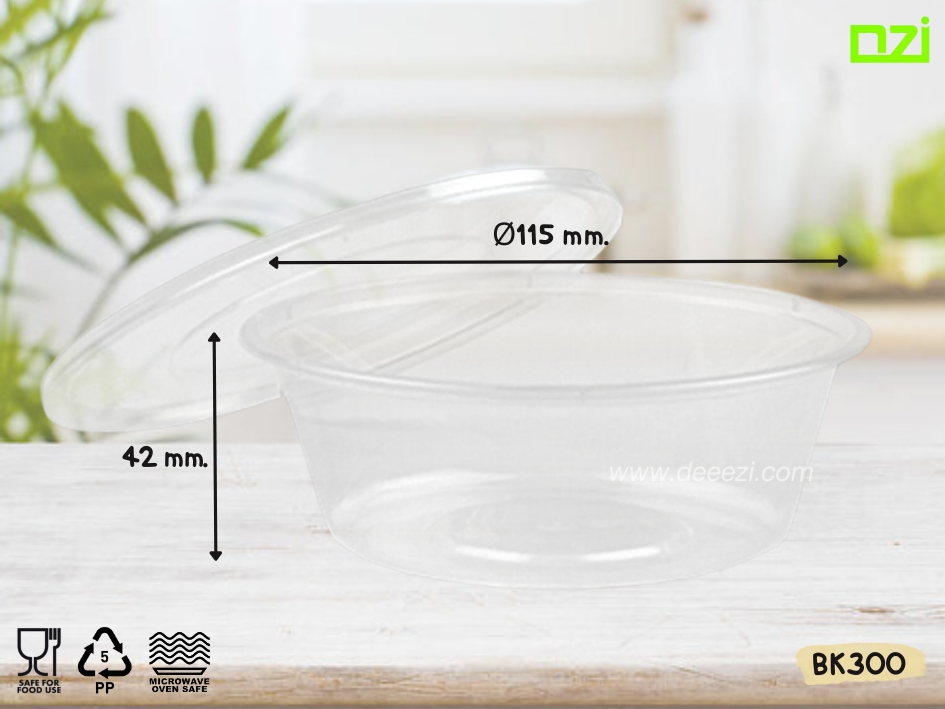 > ถ้วยพลาสติก สีใส ขนาด 300cc. พร้อมฝา