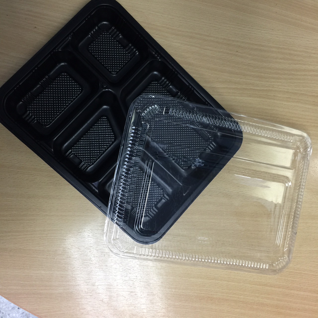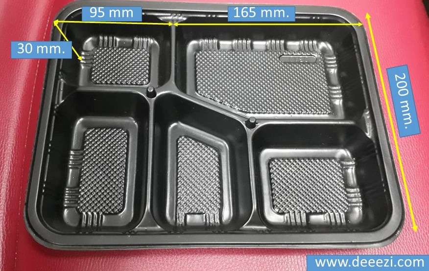 กล่องข้าว 5 ช่อง PP สีดำ. พร้อมฝา