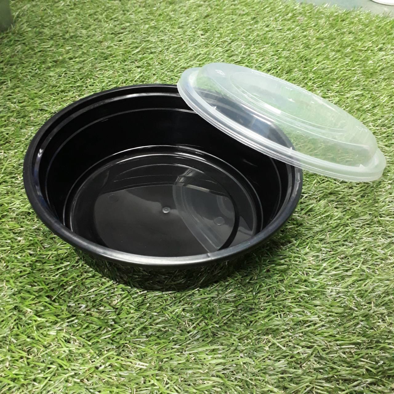 ถ้วยพลาสติกขนาด 800 ml. สีดำ ฝาใส ขนาดขอบปากกว้าง 17.4 x 6.4 cm. บรรจุ 150 ใบต่อลัง