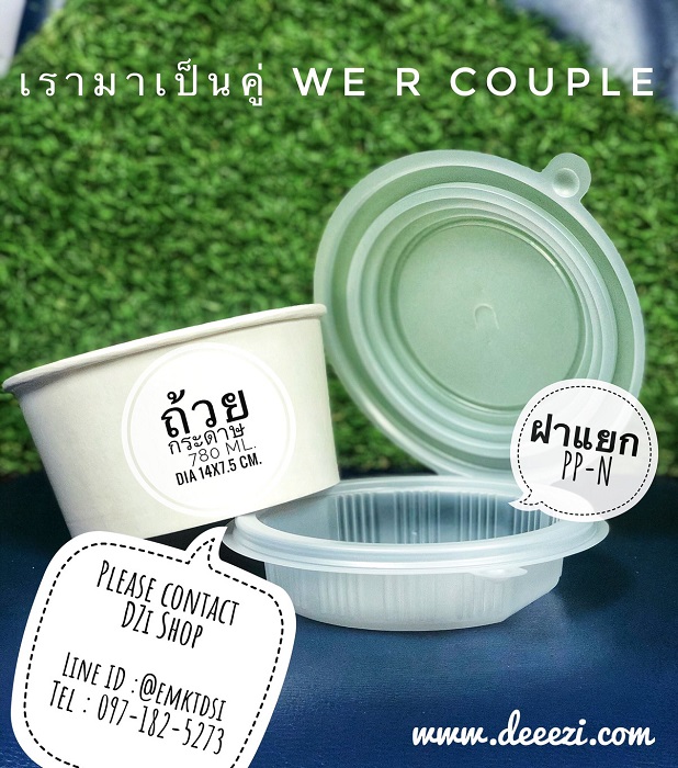 ถ้วยกระดาษสีขาวขนาดปากกว้าง 14 cm. สูง 7.5 cm. พร้อมชั้นแยกและฝาปิด บรรจุ 100 ใบ ต่อแพค