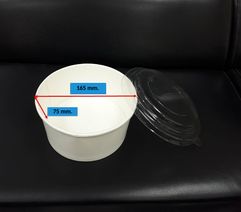 ชามกระดาษสีขาวล้วน 1300 ml.พร้อมฝา Dia165x75 mm.