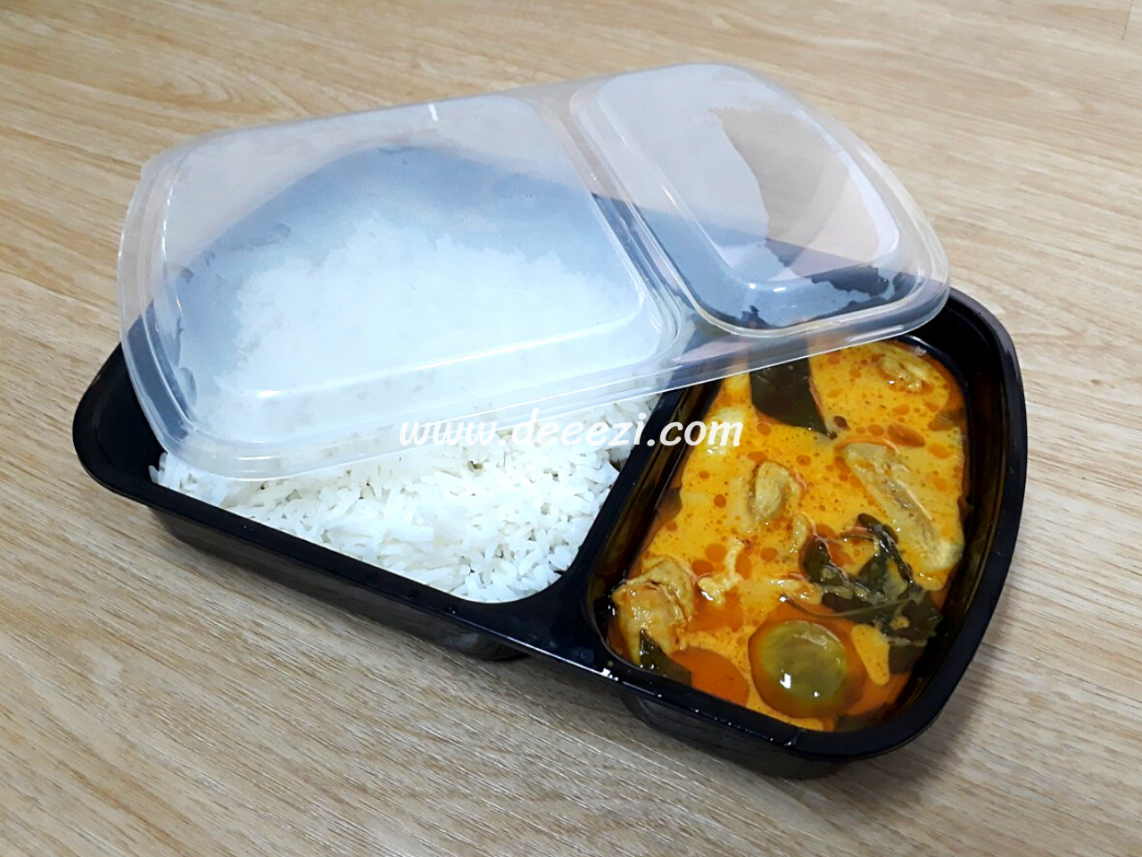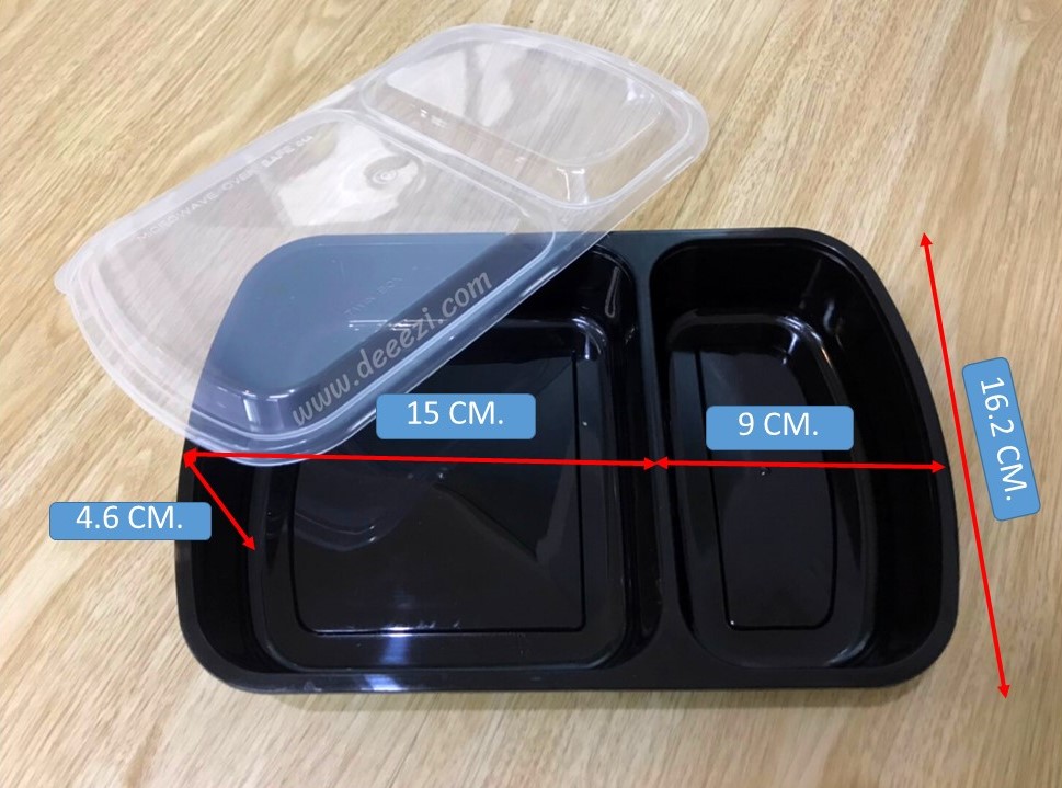 กล่องอาหารแบบแข็งสีดำ 2 ช่อง พร้อมฝา