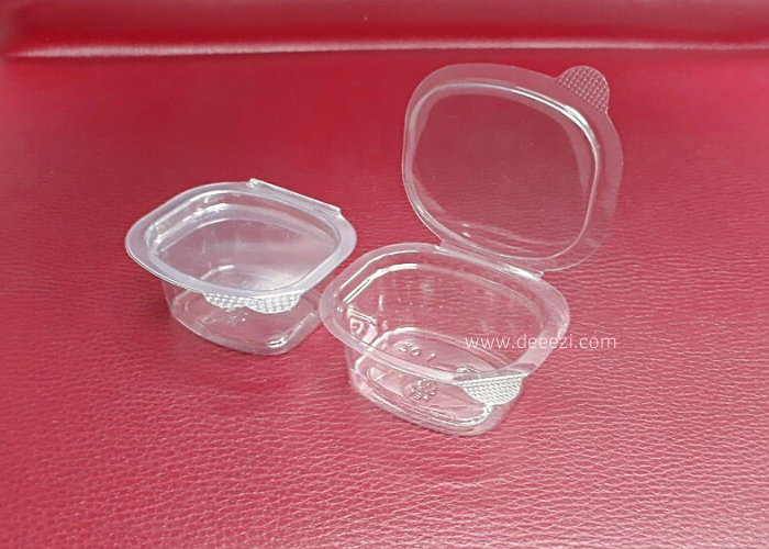 ถ้วยน้ำจิ้มสีเหลี่ยม สีใสพร้อมฝาในตัว