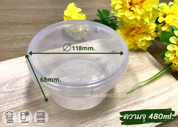 E-Catalog > กล่องอาหารพลาสติกแบบแข็ง > ถ้วยกลมไมโครเวฟฝาล็อก สีใส ขนาด 480 ml. พร้อมฝา