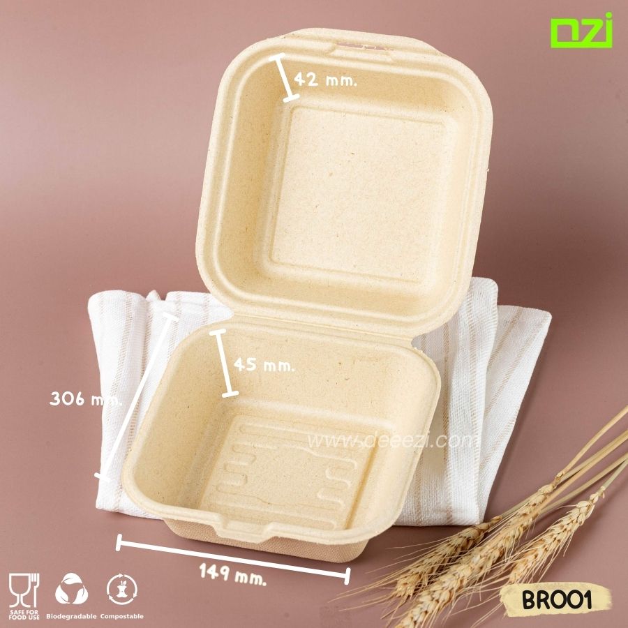 กล่องอาหารเยื่อฟางข้าว 1 ช่อง 6 x 6 นิ้ว พร้อมฝาในตัว