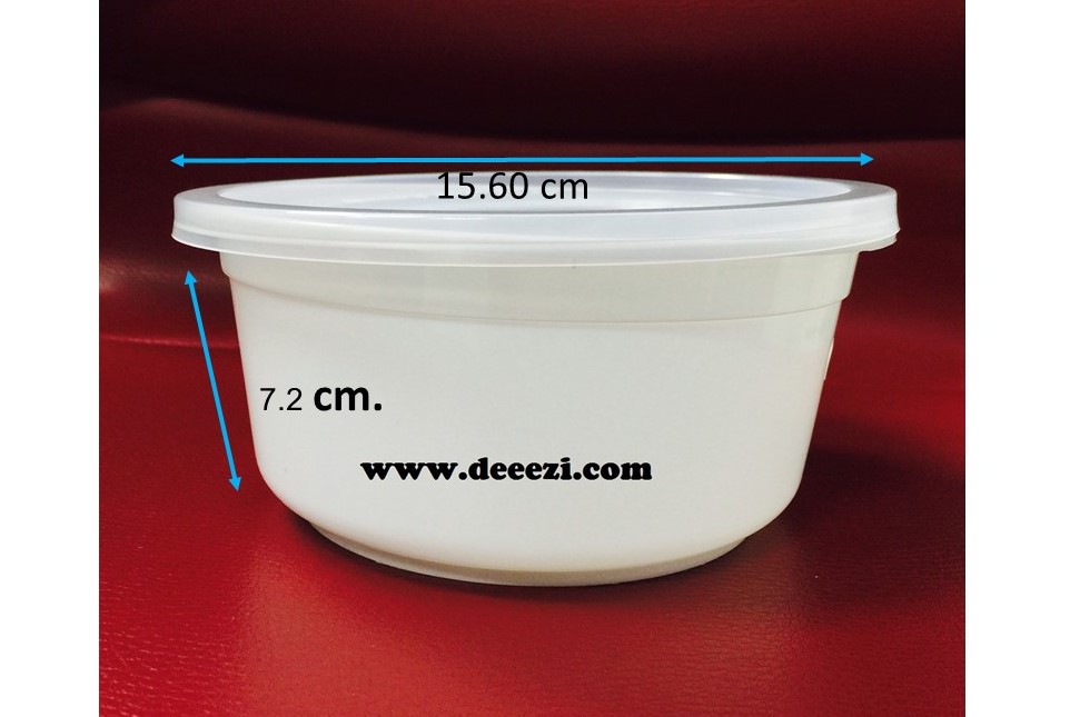 ถ้วยพลาสติกสีขาวแข็งขนาด 750 ml. Dia ขอบปาก 15.60 cm. ความสูง 7.2 cm.