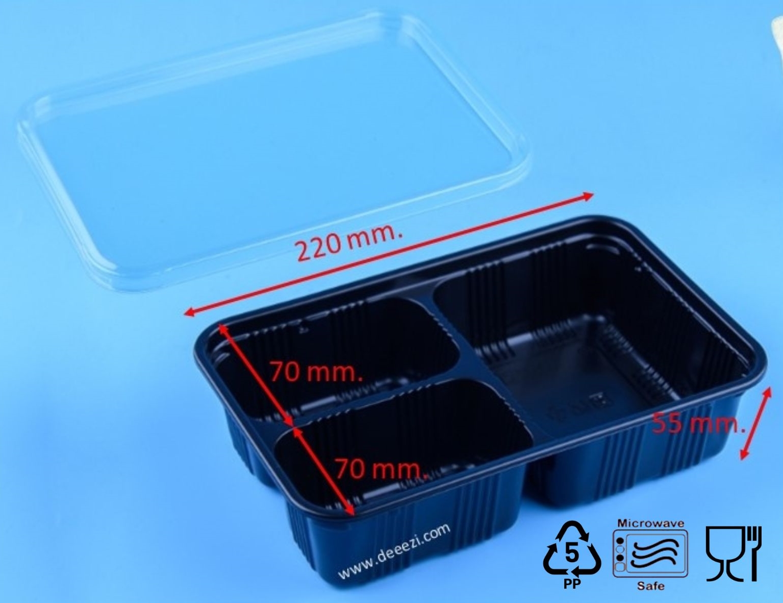 E-Catalog > กล่องอาหารพลาสติก > กล่อง 3 ช่องสีดำ P614
