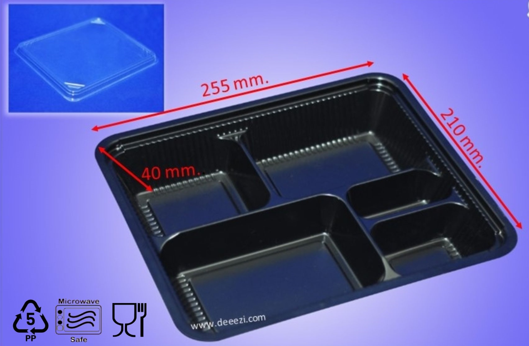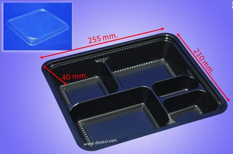 E-Catalog > กล่องอาหารพลาสติก > กล่องเบนโตะ 5 ช่องสีดำ พร้อมฝา